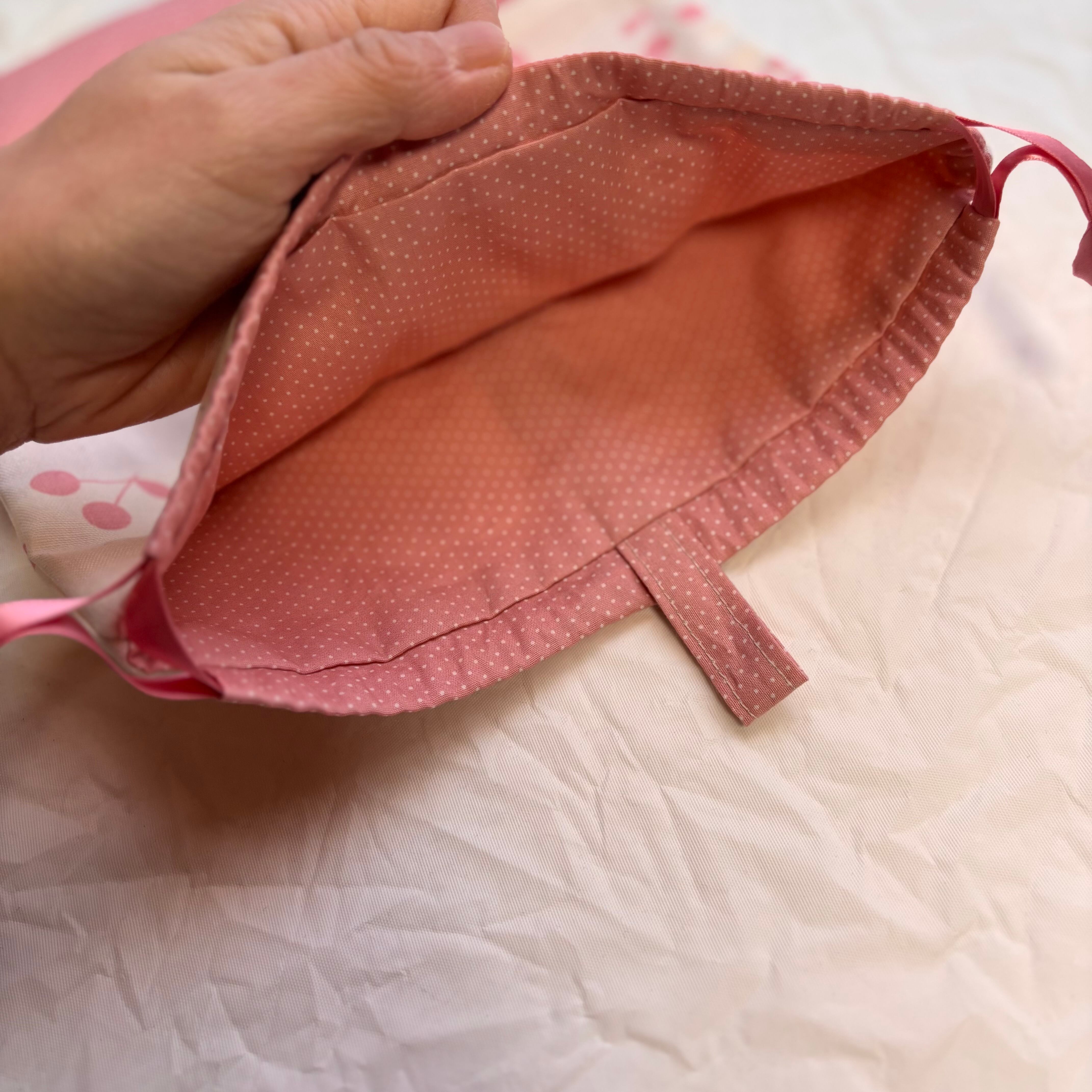 ランドセルに掛けれる巾着 さくらんぼ白×ピンク
